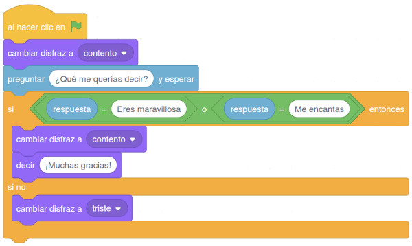 Para programar la aplicación, tendríamos que pensar todas las posibles frases bonitas (y sus variaciones) y ponerlas todas dentro de una enorme estructura condicional (si… si no…) dentro del código. ¡Bufff! Seguro que, como yo, te estás cansando solo de pensarlo.